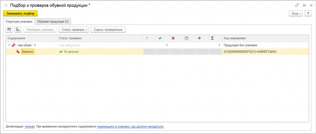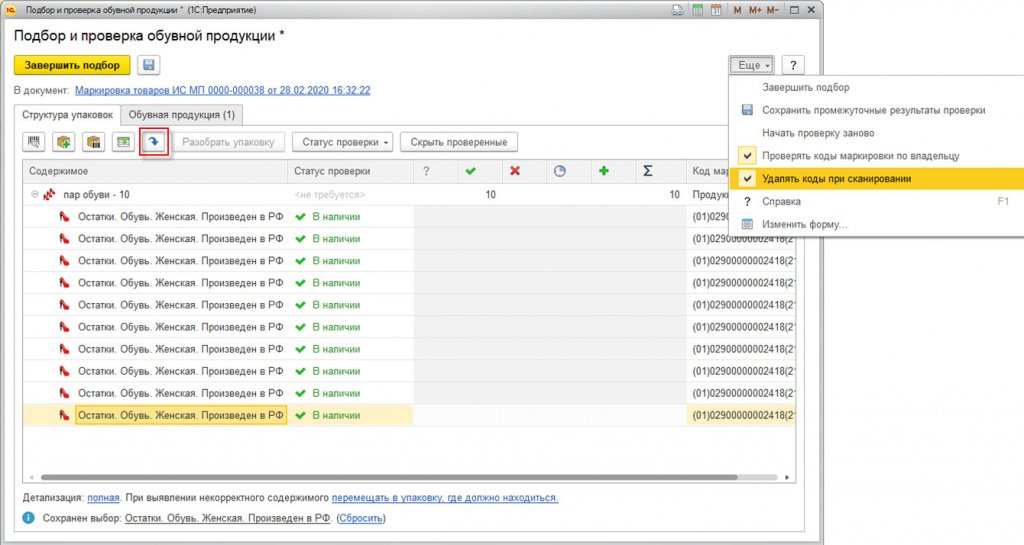 1С:Розница: маркировка остатков обуви