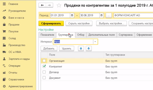 Как сформировать отчет по продажам в разрезе покупателей в 1С:Бухгалтерия.
