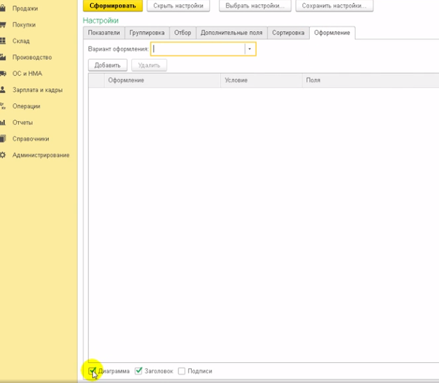 Вывод диаграммы можно отключить на закладке оформление