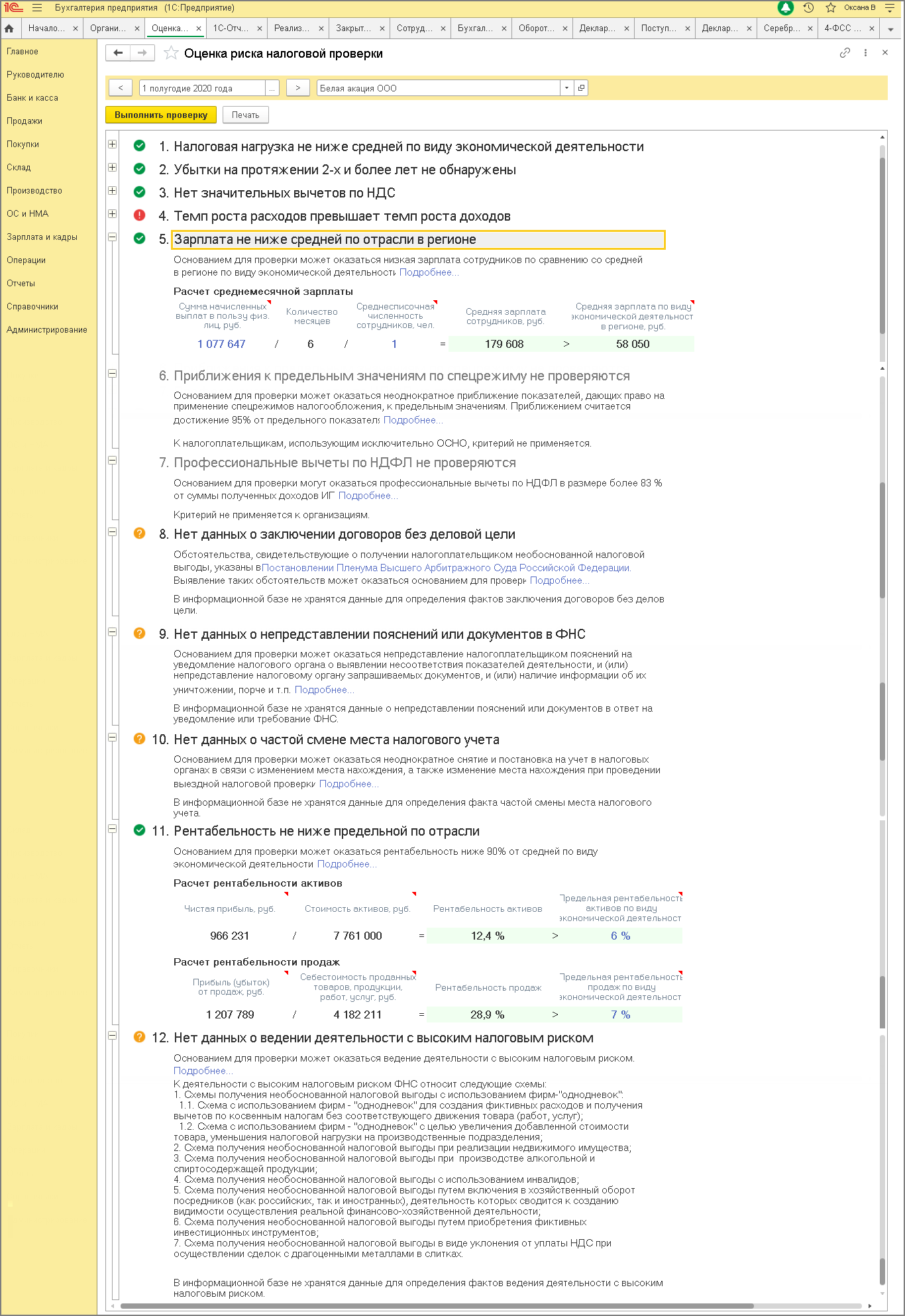 Хозяйствующие субъекты могут сами проверить информацию в учете на согласованность критериям, используемым налоговиками при планировании выездных проверок. На основе полученных результатов можно понять, имеется ли риск проведения проверки со стороны ИФНС.