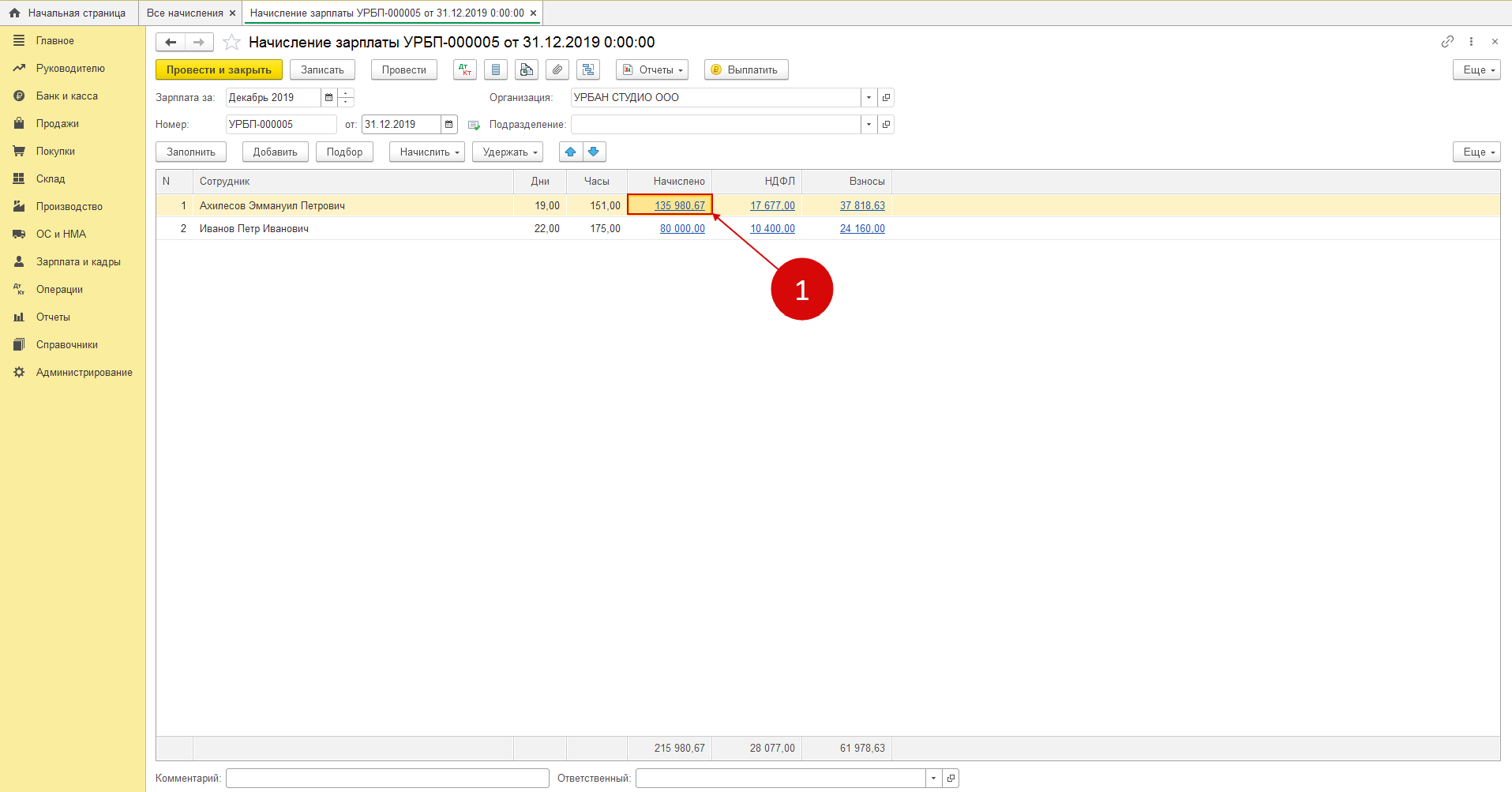 В открывшемся окне проводок пользователь может ознакомиться с записями начисления:
