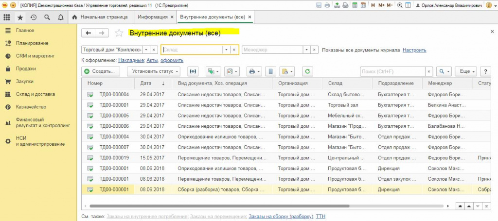 Продуманная система документооборота в 1С автоматические каждому новому документу присвоит порядковый номер, время и дату создания документа. Для того чтобы не позволить пользователям запутаться, в системе у каждого документа может быть только свой уникальный номер, без повторений.