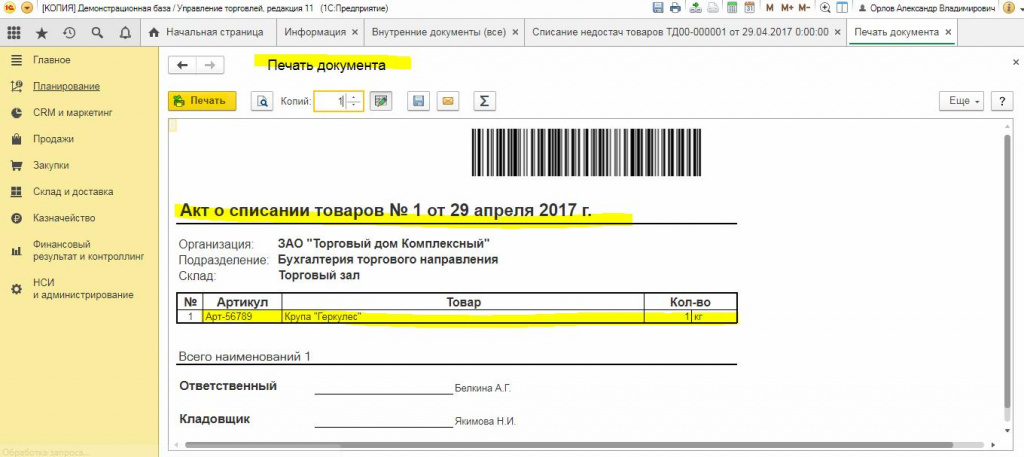 Документ в 1С 8.3: настройка, проведение и формирование