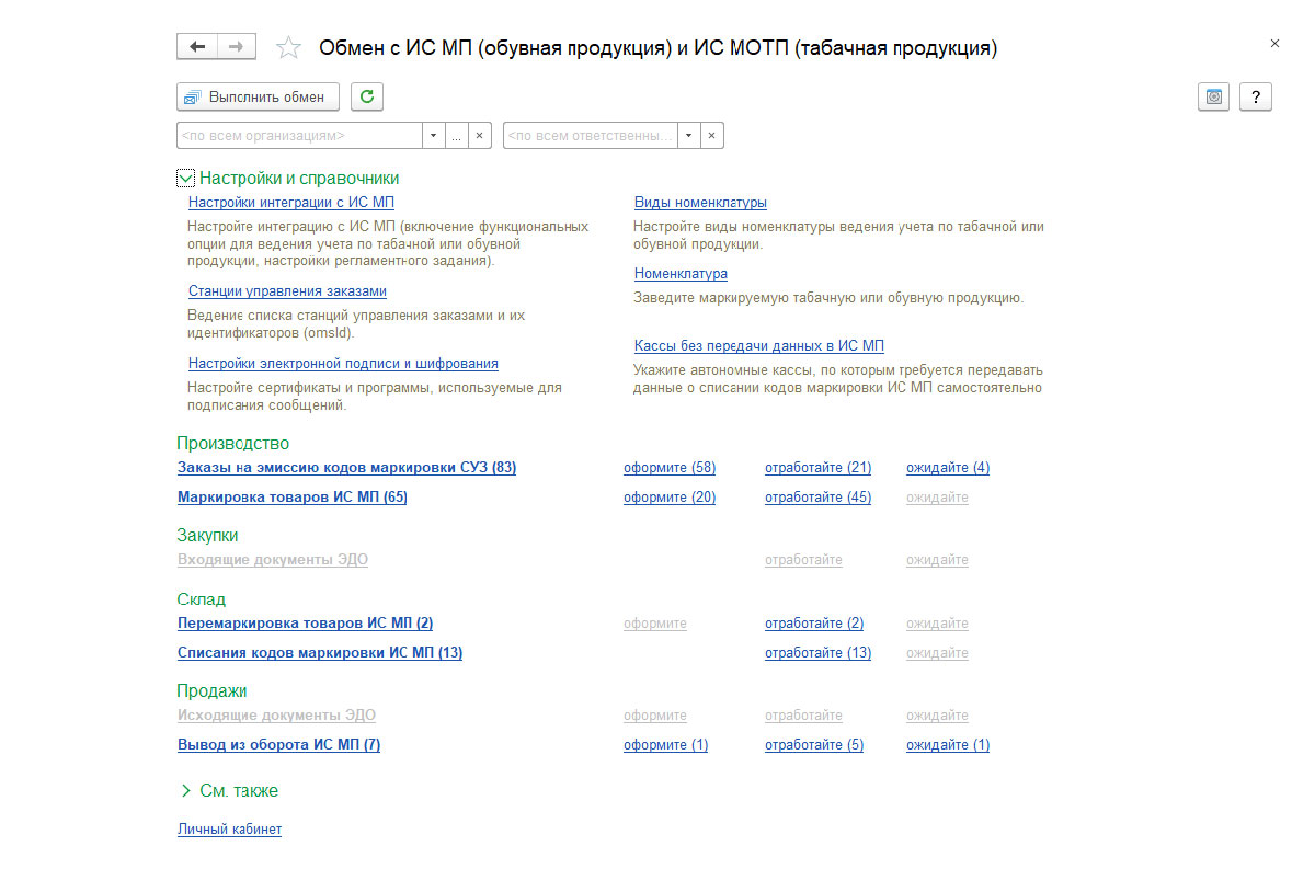 После завершения активации ЭДО и успешного подключения к платформе 1С произойдет автоматическая передача продукции с маркировкой.