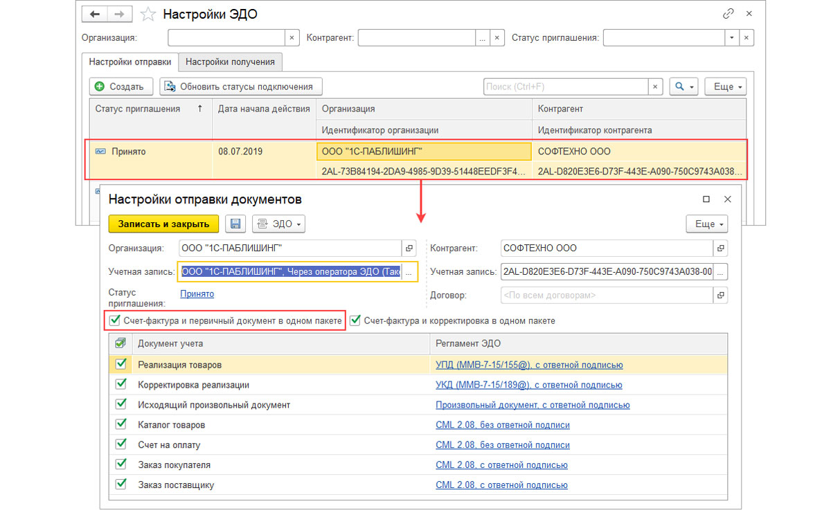 Работа с платформой ЭДО будет по-прежнему состоять в стандартной приемке УПД с помощью ЭДО. Следует знать, что в документы уже будут интегрированы полномочия для передачи товарных маркировок, плюс необходимые настройки.