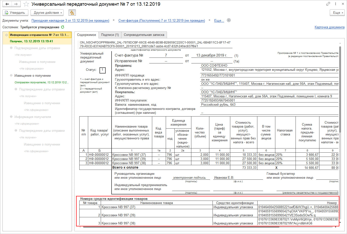 В случае прохождения проверки, необходимо удостоверить документ подписью. Затем необходимо заново совершить операцию по маркировке продукции. Результатом станет новый УПД для розничной торговли.