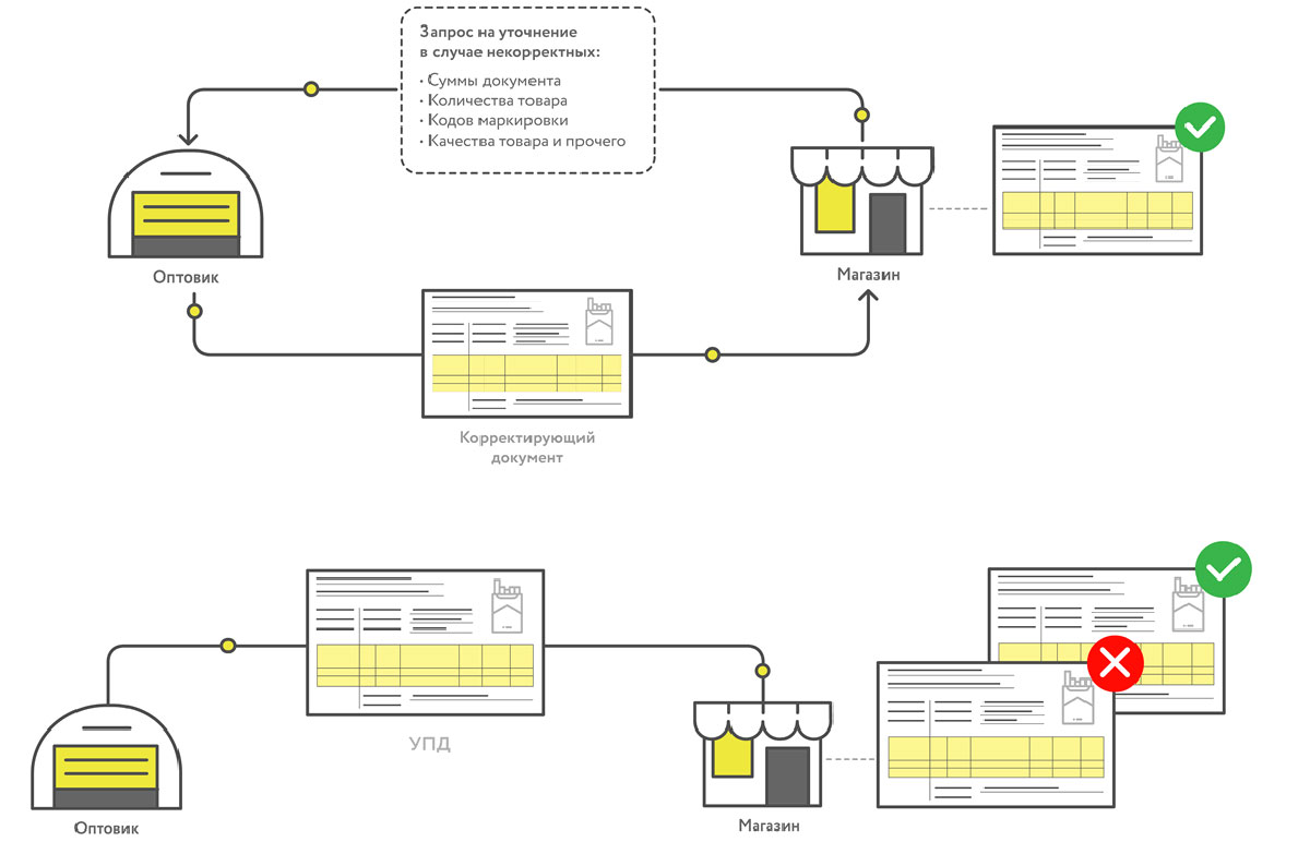 6. Специалисты поставщика вносят необходимые изменения в систему и повторно отправляют корректный документ в розничный магазин.