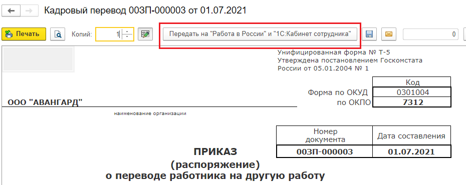 • документ выгружается в личный кабинет работодателя в сервисе «Работа в России»;