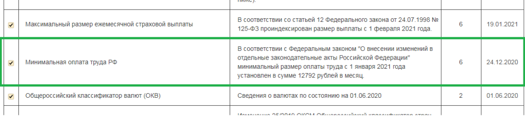 Чтобы загрузить новый МРОТ этим способом, необходимо скачать классификатор.