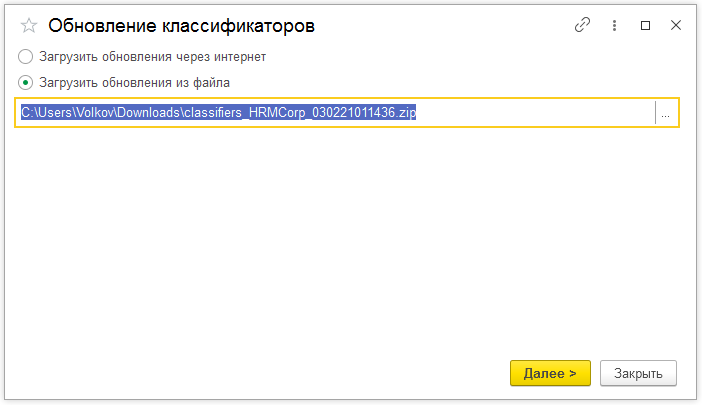 Откроется окно, в котором выбираем "Загрузить обновления из файла".