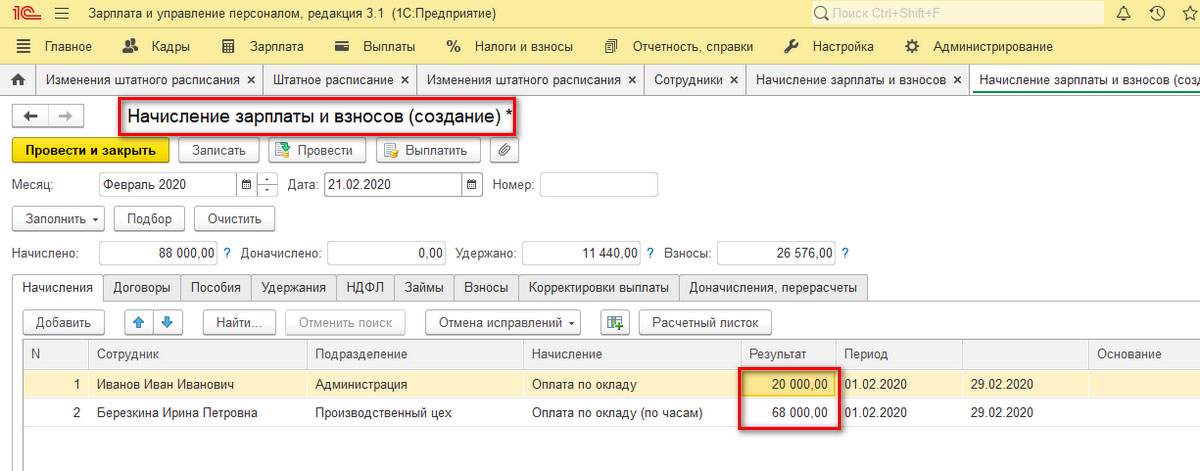 В файле «Начисление зарплаты и взносов» можно посмотреть, как рассчитались данные. Все должно быть корректно, с учетом ранее выполненных действий.