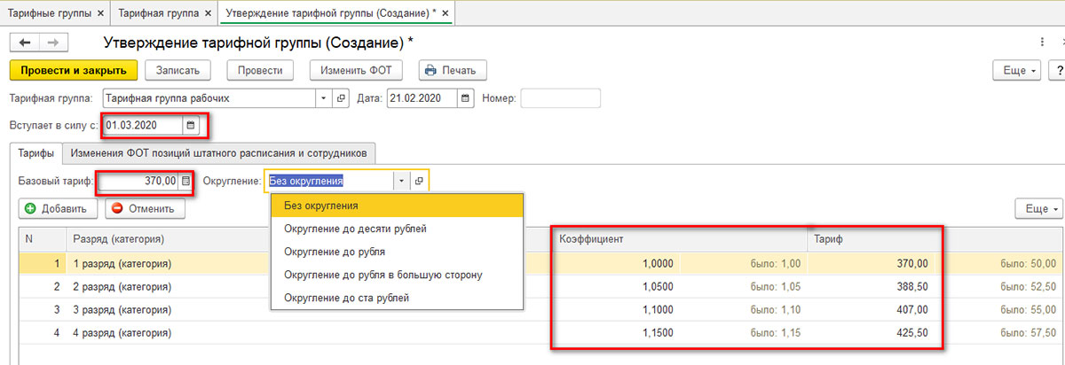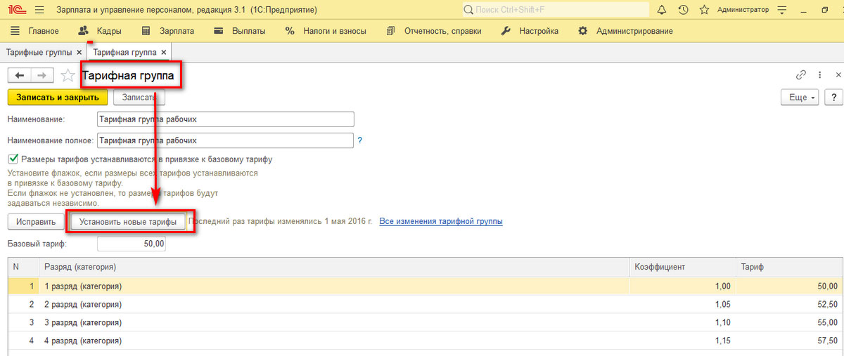 Индексация зарплат через «Утверждение тарифной группы»