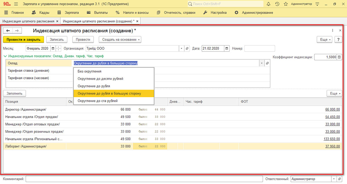 Индексация зарплат в 1С через «Индексацию штатного расписания»