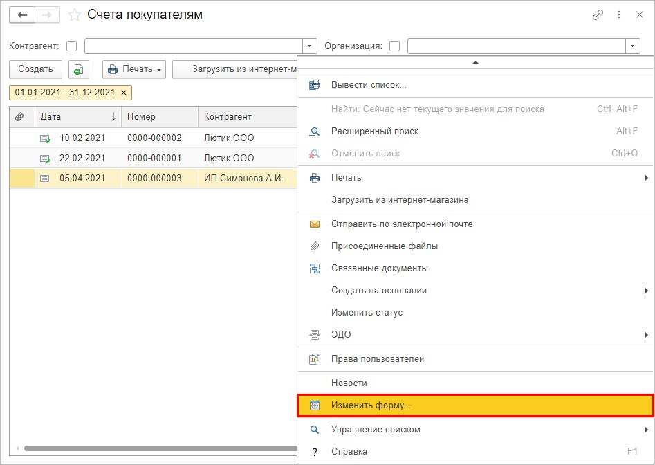 Добавление кнопки в журнал документов на вкладке «Счета покупателям»