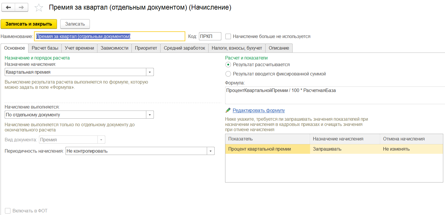 А теперь давайте рассмотрим пример, когда квартальная премия высчитывается автоматически при начислении зарплаты. Очень удобный вариант, программа помнит за нас, когда мы должны рассчитать премию.