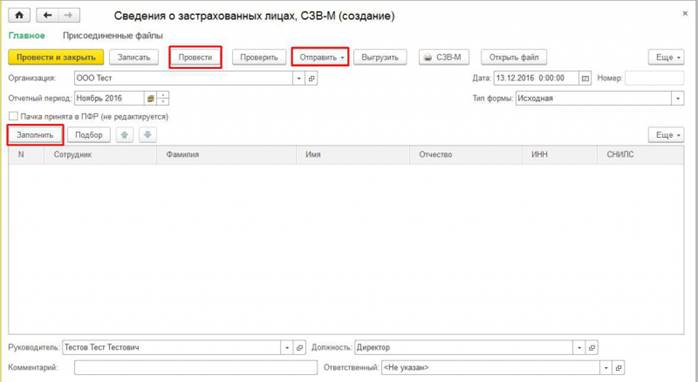 Заполняем документ, после чего нажимаем на кнопку "Заполнить". Проверяем все данные и нажимаем на кнопки "Провести и Отправить".