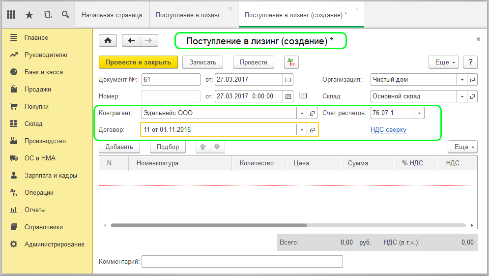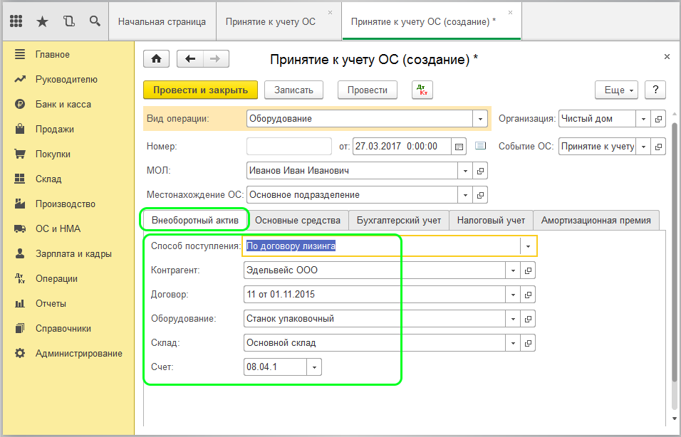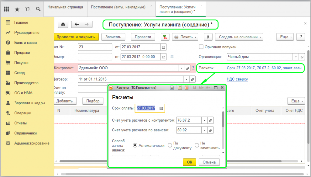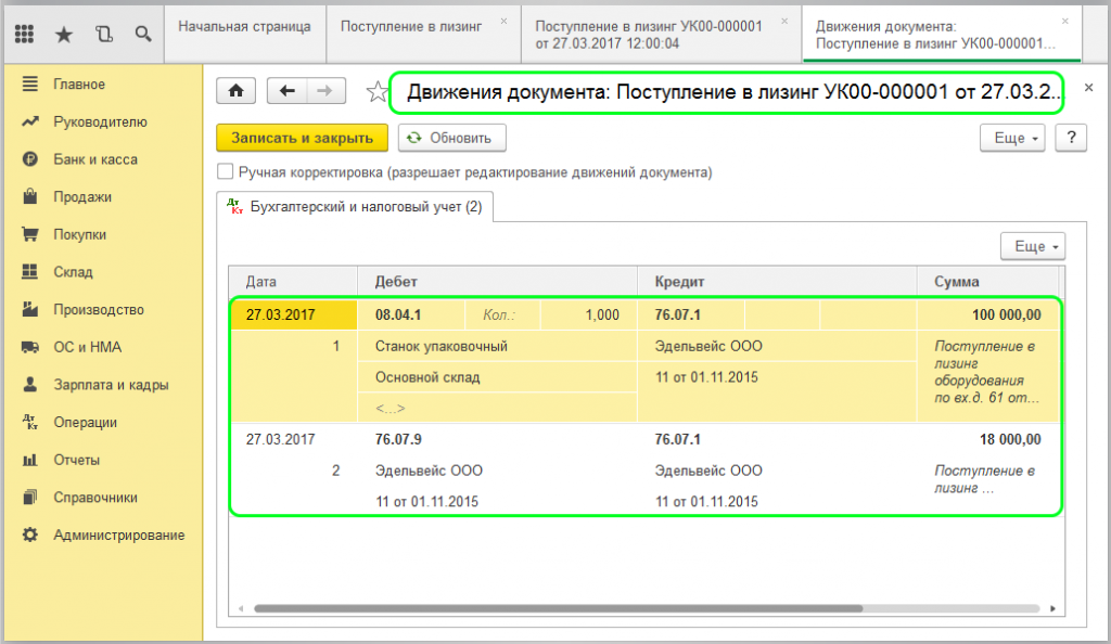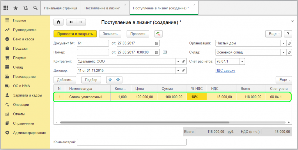 Как отразить лизинг в 1С 8.3 у лизингополучателя
