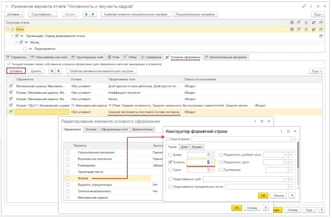 • поменять формат числа в графе «Средняя численность списочного состава за период». Для этого нужно указать для этого показателя требуемое округление — до сотых или десятых долей, а также до целого числа;