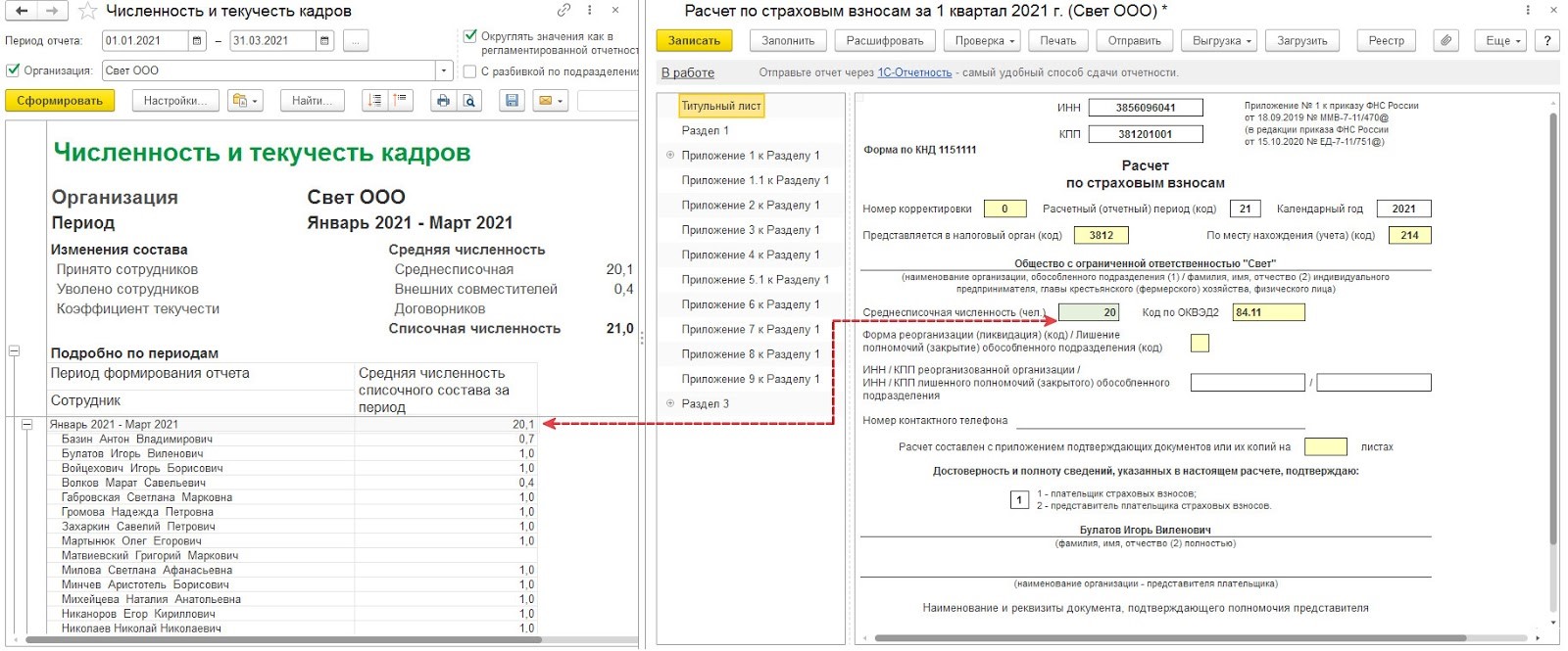Как указать среднесписочную численность в РСВ за 1 квартал 2021 года
