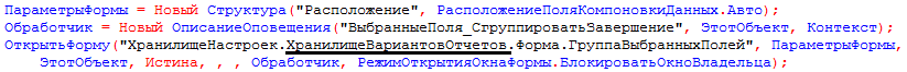 • Сохранить параметры в хранилище, которое уже было установлено при закрытии отчета или формы, а также восстановить при новом открытии;