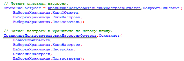 Благодаря хранилищу настроек, можно не только сохранить, но и просмотреть и настроить параметры отчетов, которые вы формируете. Это позволяет в автоматическом режиме заполнить форму настройки и оптимизировать работу.