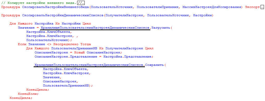 Благодаря способу, который мы описали выше, вы можете сохранять данные не в таблицах системы, а выбирать отдельные объекты конфигурации. Для того, чтобы реализовать такой механизм, программист использует специальные описанные алгоритмы, которые и отвечают за сохранение/восстановление настроек.
