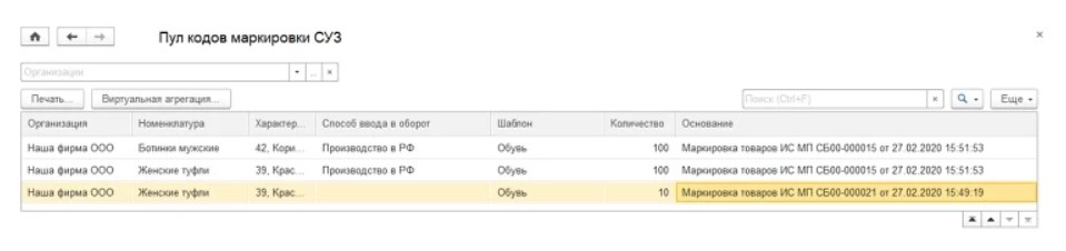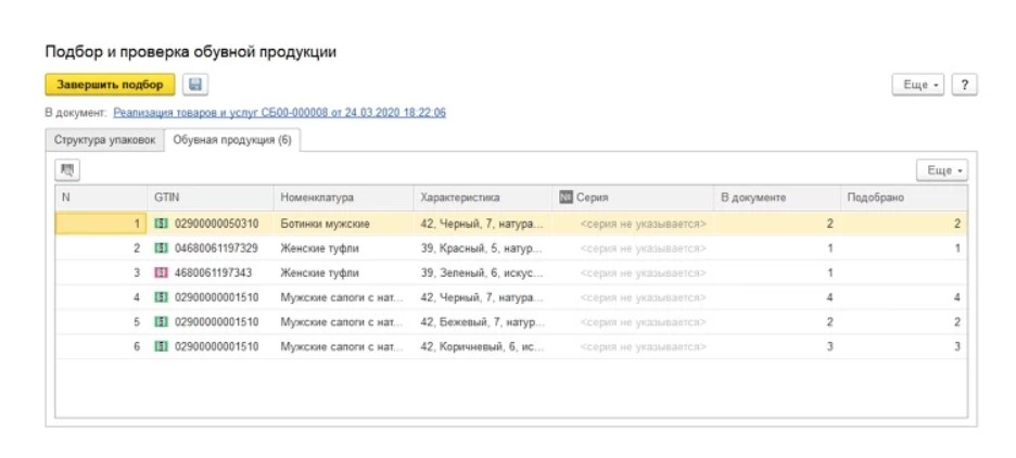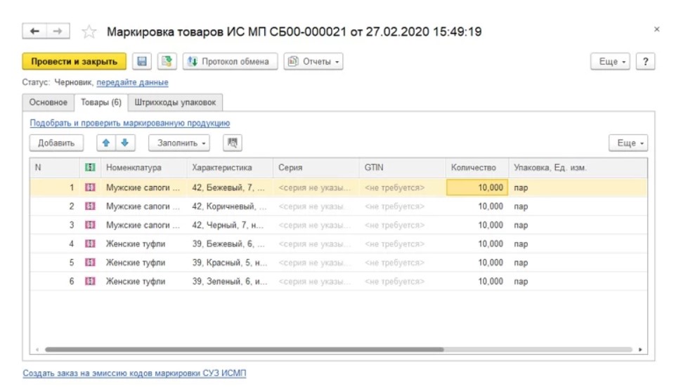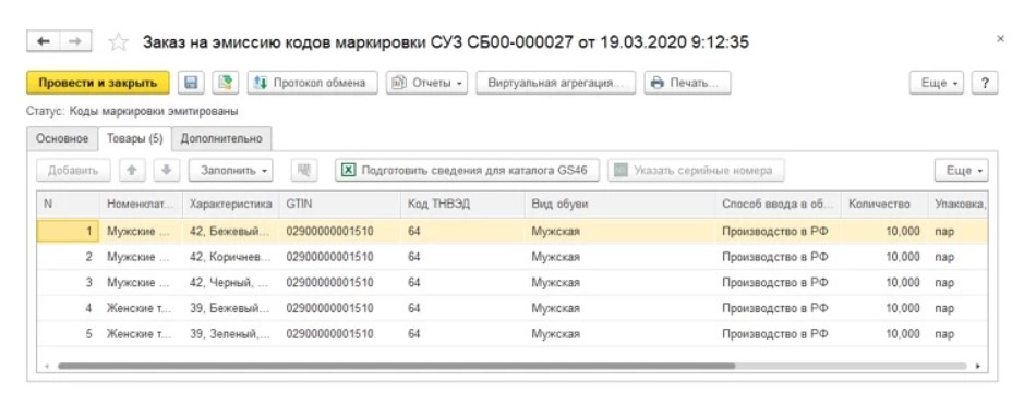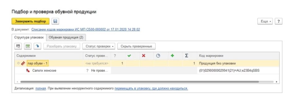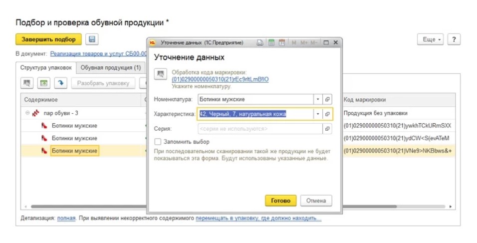 Выполнение маркировки обуви в «1C:УТ»