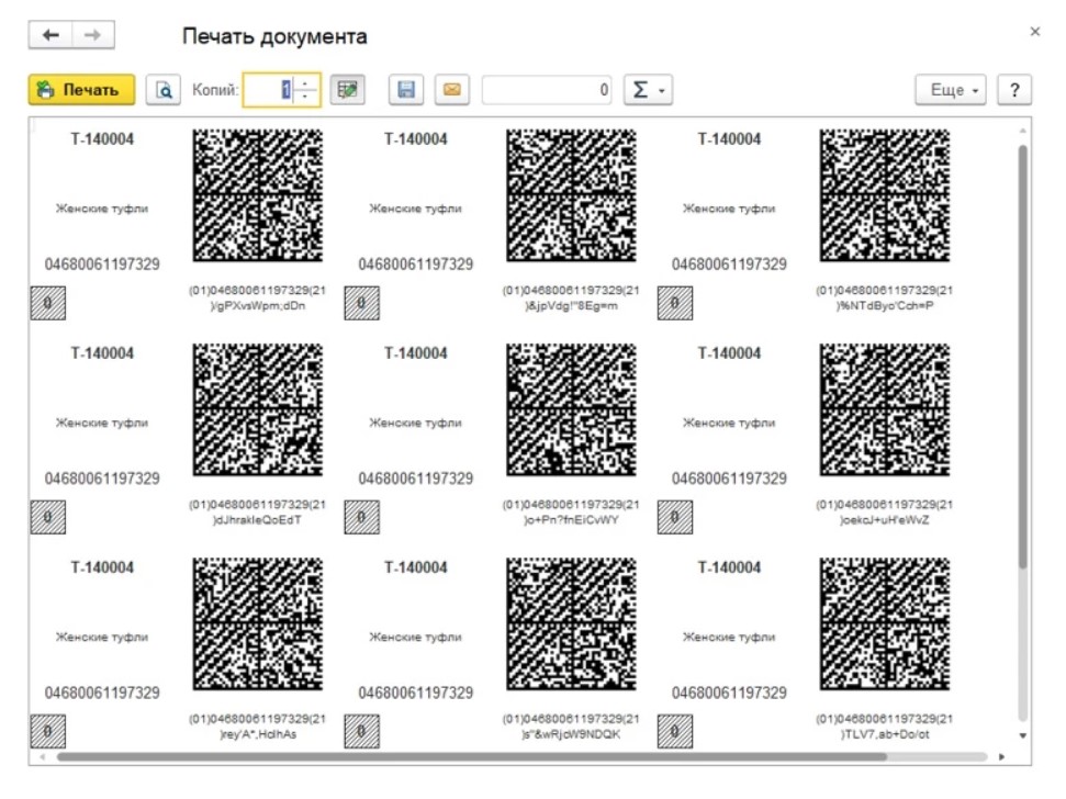 - Можно выбрать массовую печать штрихкодов с последующим нанесением на упаковки. Предварительно убираются лишние штрихкоды.