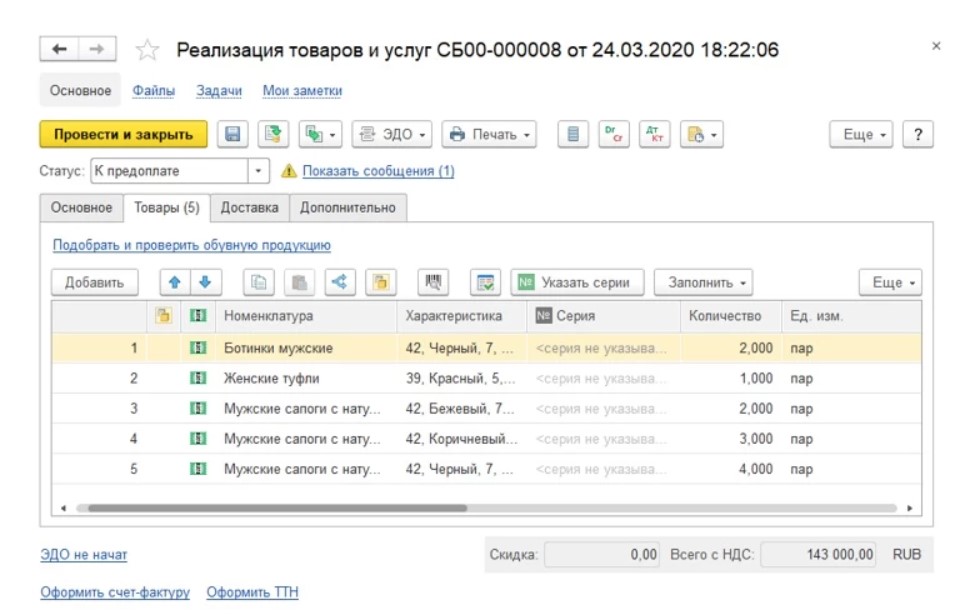 Особенности приобретения обуви с маркировкой оптовыми продавцами в «1С Управление торговлей »