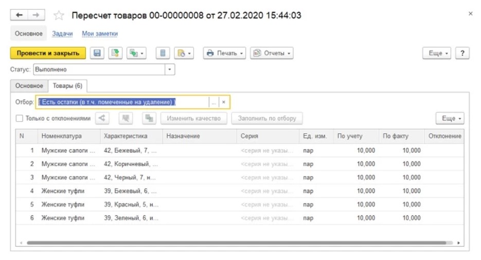 Ничего вручную заполнять не придется, так как данные будут взяты из результатов пересчета остатков обуви.
