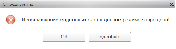 Устранение ошибки «Использование в данном режиме модальных окон запрещено» в системе 1С