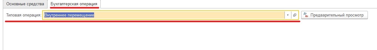 В разделе "Бухгалтерские операции" необходимо указать "Внутреннее перемещение"