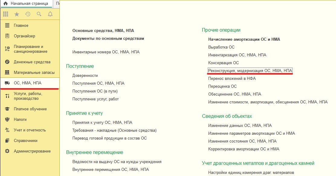 Модернизация основного средства в 1С: БГУ редакции 2.0