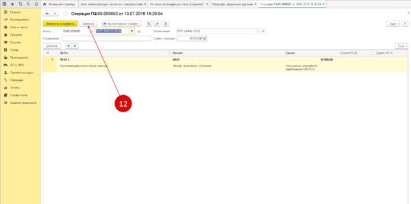 Последним шагом становится подтверждение процедуры. Пользователь кликает на надпись «Записать». В 1С 8.3 можно создать неограниченное количество проводов по пеням и штрафам.