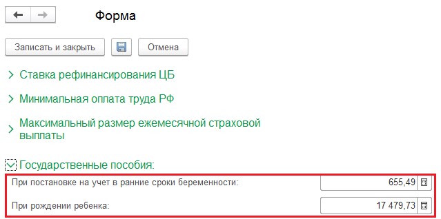 Единовременные пособия: начисления в 1С: Бухгалтерии