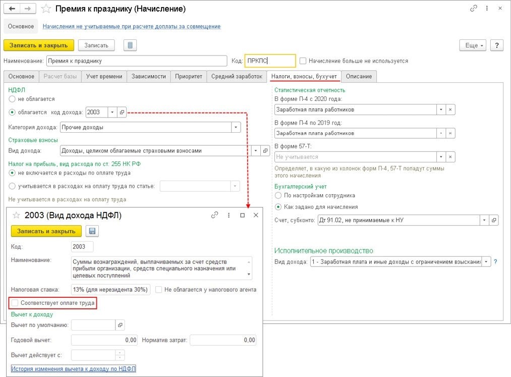 Учет премии к празднику