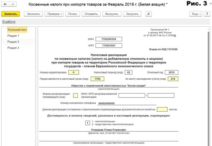 Заполнение декларации по косвенным налогам в 1С: Бухгалтерия