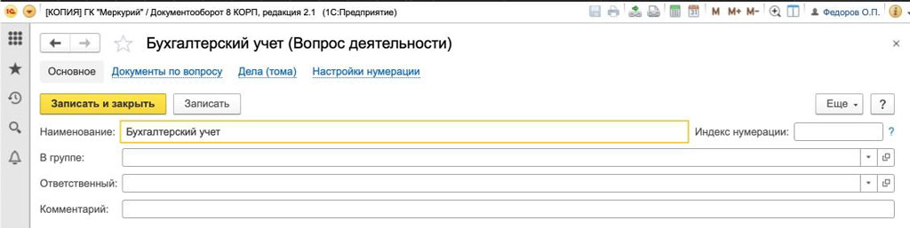 • "Индекс вопроса деятельности" - 10 символов максимум, показывает краткое название вопроса деятельности организации, настраивается в карточке данного элемента, как показано на рисунке 9.