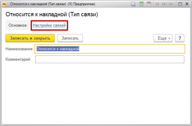 Следом откроется форма, в которой нужно ввести наименование типа связи. После переходит в раздел «Настройка связей», чтобы установить необходимые параметры.