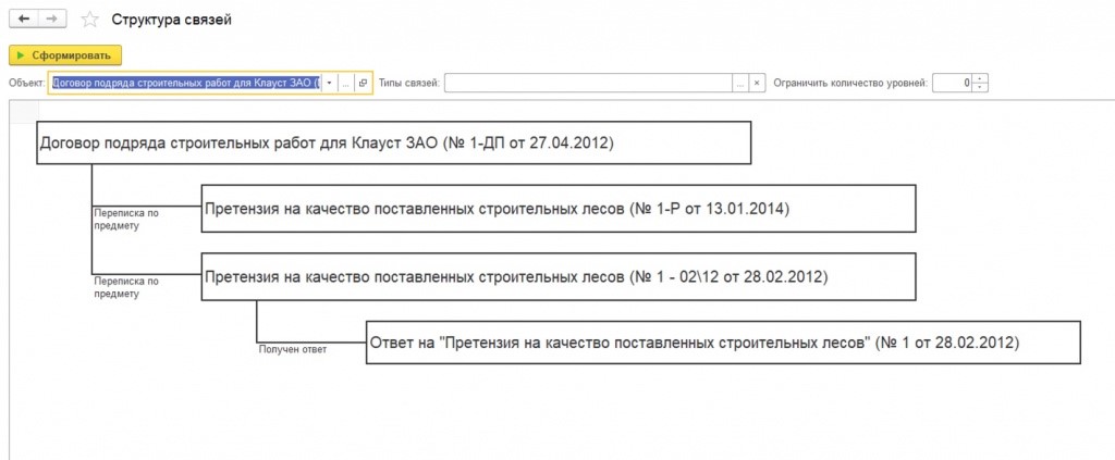 Для того, чтобы не запутаться во всевозможных связях и взаимосвязях и уметь их правильно контролировать нужен специальный функционал. Программа 1С:Документооборот имеет специальный типовой механизм, который называется «Связи документов». Он отвечает за всю прозрачность связей между документами, а главное позволяет легко управлять ими в любое время.