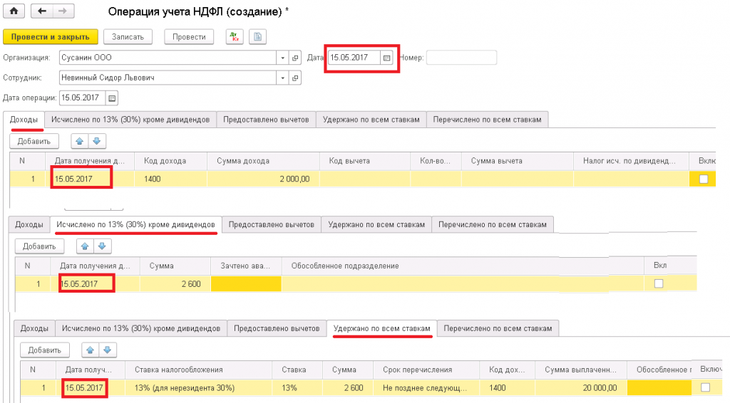 Именно поэтому в разделе «Операция учета НДФЛ» все даты строго равны реальной дате выплаты.