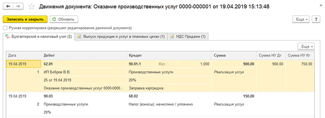 Чтобы рассмотреть наш пример и отображение операции по оказанию услуг разберем 3й вариант.
