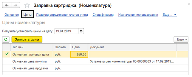 Плановую цену можно заполнить сразу по ссылке "Цены".