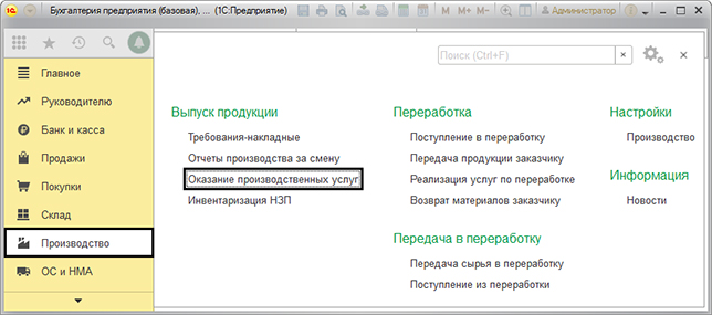 Оказание производственных услуг в 1С 8.3 Бухгалтерия