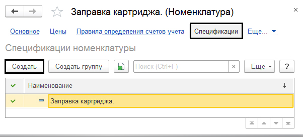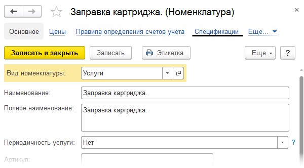 Когда мы заносим элемент производственной услуги, то можем прописать спецификацию.