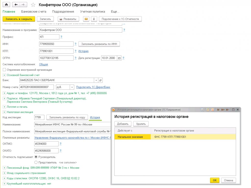 ОКТМО в 1С Бухгалтерия 8.3