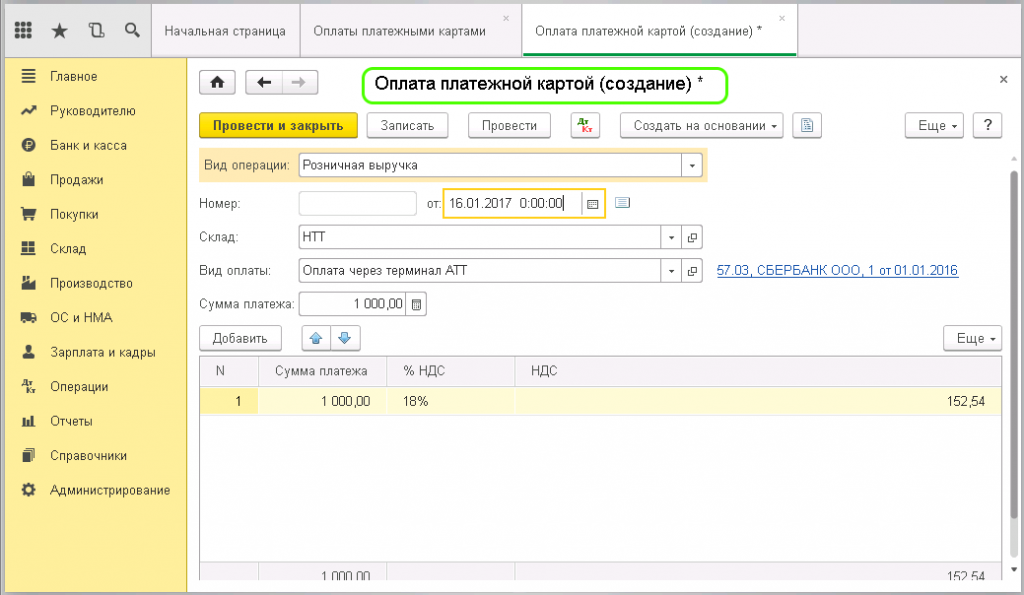 Значительная часть покупателей оплачивает покупки банковскими картами. Потому в 1С есть функционал для проведения такой оплаты и в автоматизированных торговых точках, и в неавтоматизированных.