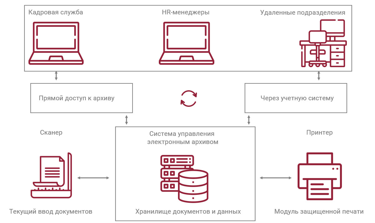- Локальный архив – хранение электронной документации выполняется с помощью пользовательского сервера.