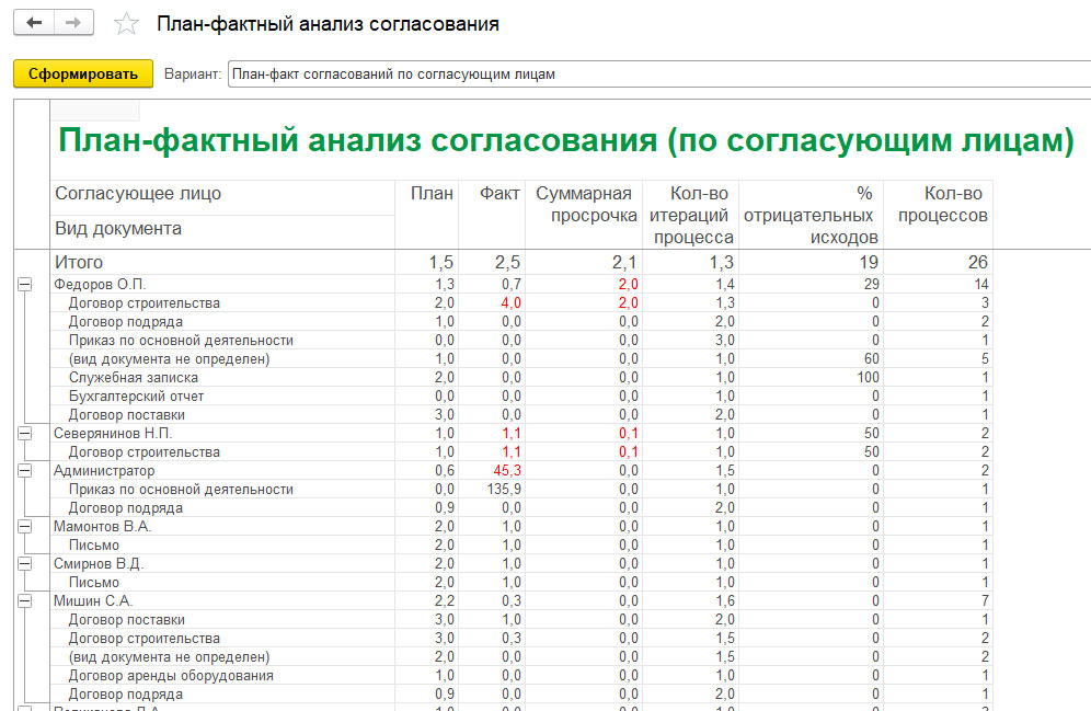 С помощью отчётов в 1С Документооборот вы сможете узнать: