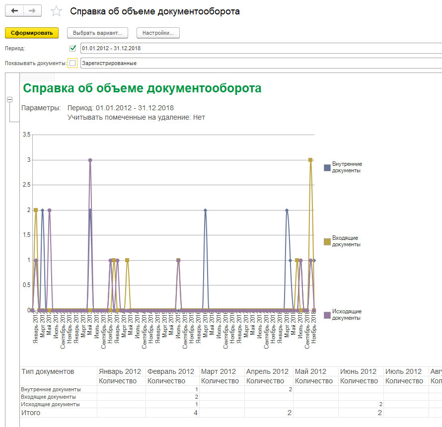 Ответ на этот вопрос можно найти в отечности. В программе 1C:Документооборот существует более 300 видов отчетов. Все они имеют свое направление и разрезы аналитики. Также, у вас есть возможность легко расширить этот список, дополнить новыми отчетными формами.